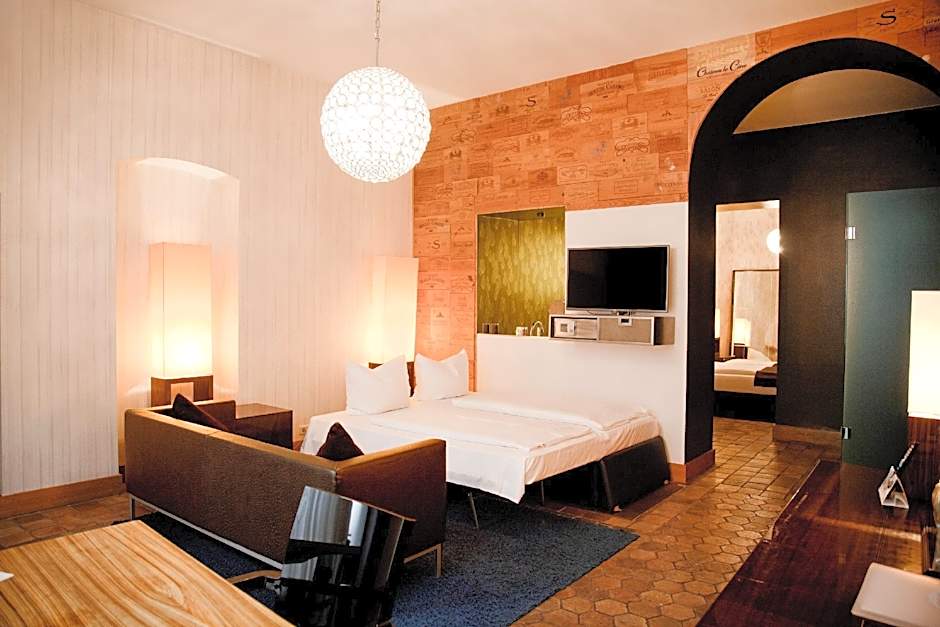 This art deco-style junior suite has a double room, a 160 x 79 in bed, a living room with a sofa bed and an open bathroom with shower. It includes an LCD TV, telephone, free WiFi, a safe and an Apple docking station.